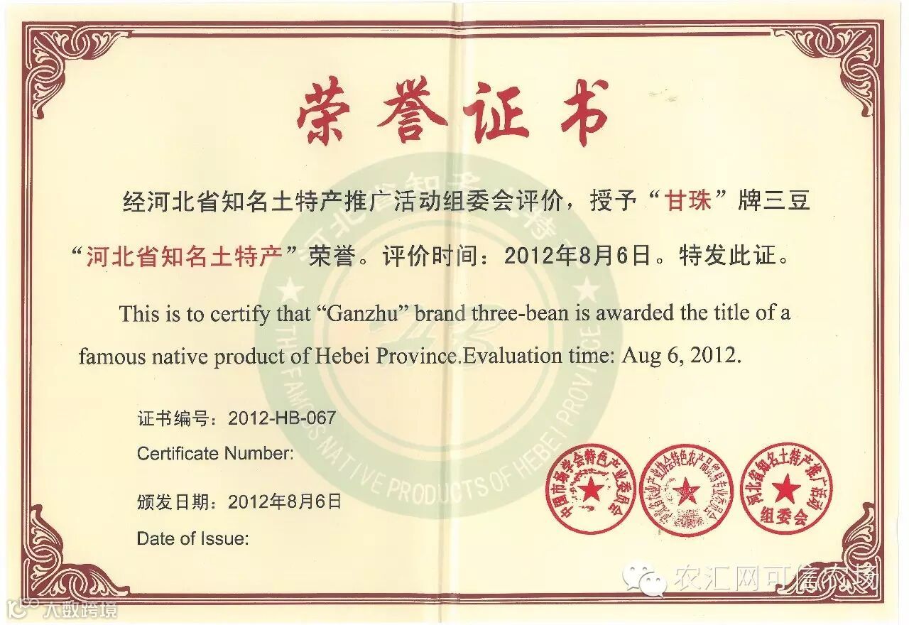合作社主打产品“甘珠”牌红小豆获得“中国名牌农产品”“国家A级绿色食品”“河北省名牌产品”等多项荣誉称号,甘珠牌商标是河北省著名商标。多年来,合作社在带动农民增收的同时,自身也得到长足发展,目前,合作社总占地100亩,总建筑面积20000平方米,拥有现代化程度较高的红(绿)豆沙全粉车间,红(绿)豆浆挂面车间,黑小麦专用面粉车间,原粮机选车间四座,各种初加工、深加工设备设施300余台套,总资产1.3亿元。合作社被评为“河北省十佳农民专业合作经济组织”“河北省农业产业化经营重点龙头企业”,并被农业部授予“全国农产品加工示范企业”“全国绿色食品示范企业”“全国农产品加工企业科技创新机构”等多种荣誉称号,多次受到国家和省市县各级政府的表彰奖励。