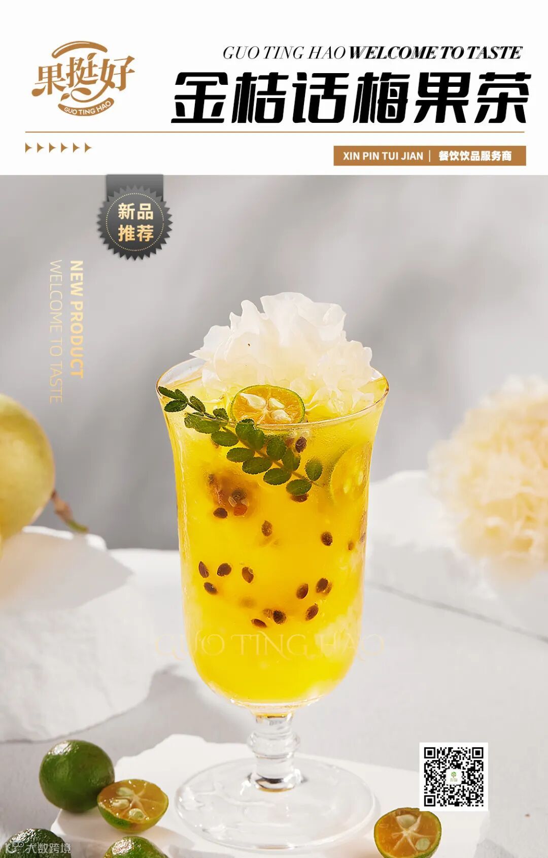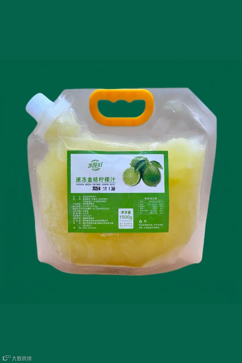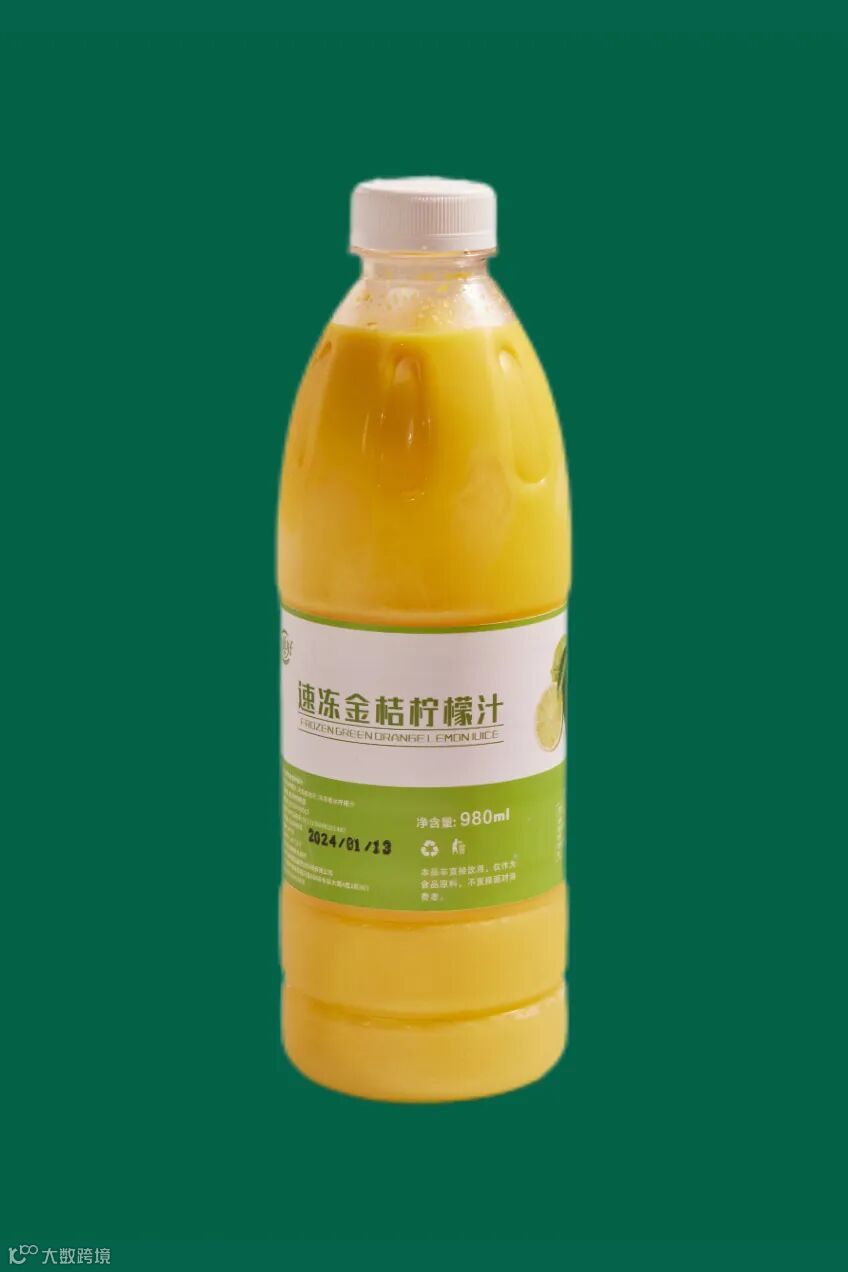 ②金桔柠檬汁(规格980g),成本低,性价比高,适用于大规模餐饮店预制出品,也可以作为基础饮品,复配多种果汁、果茶等饮品的调配。