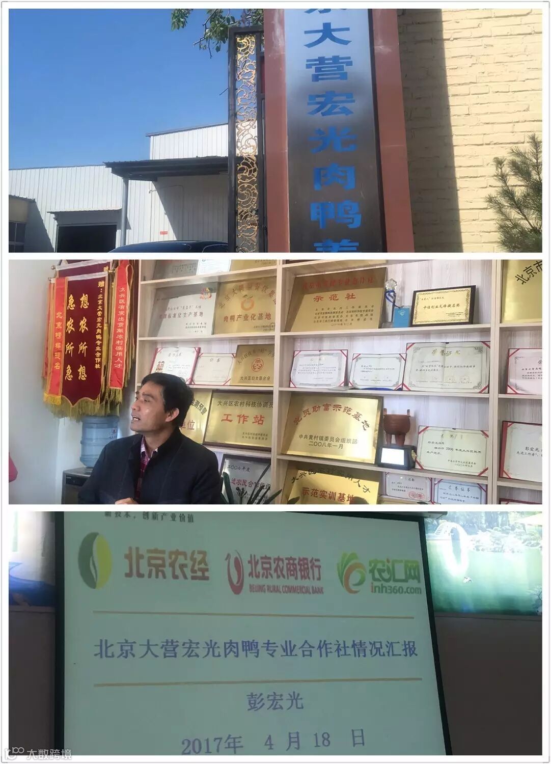 上午首站北京大营宏光肉鸭合作社听取彭宏光理事长报告,大营宏光合作社是大鸭梨,便宜坊等烤鸭店主流供应商。