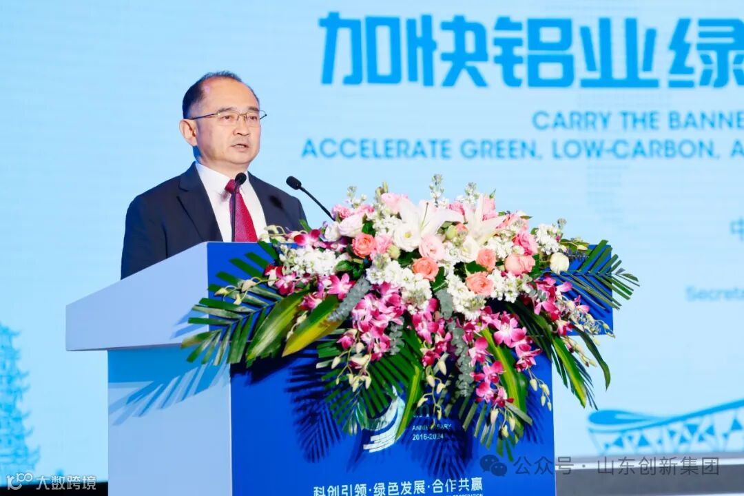 崔立新董事长在致辞中对长期以来关心和支持创新集团发展的各级领导和行业同仁、客户朋友表示感谢。他说,连续举办了九届的国际铝产业链绿色发展高峰论坛,始终致力于探索战略协同的价值提升,不断为中国铝工业高质量发展凝聚新智慧。他表示,这些年来,在中国有色金属工业协会的大力支持下,在各地各级党委政府的正确领导和魏桥创业集团的积极引领下,创新集团通过大力推进高质量发展,在产业布局、结构调整、科技创新等方面取得了长足进步,发展成为全球规模最大的铝合金材料生产研发基地。2023年,创新集团实现销售收入首次突破千亿大关,今年将突破1200亿元,再创历史新高。我们深知,创新集团取得的每一次成就,迈出的每一步,都离不开上下游客户的关心支持和鼎力帮助。未来,我们将一如既往的提供最优质的产品和最满意服务,以拳拳之心回报上下游客户长期以来的支持和厚爱。让我们紧密携手,合力谱写互利共赢、共同发展的崭新篇章。本届论坛以“科创引领·绿色发展·合作共赢”为主题,共同探讨铝产业实现双碳目标的策略与路径,一起研究铝产业绿色转型的方式与方法,契合当前形势,呼应行业关切。希望借此机会,与各位领导、专家学者及我们的上下游客户深入交流,共享成果,共谋发展。让我们在共建“铝工业命运共同体”的思想指引下,在“串珠成链、织链成网”的模式推动下,共同开启中国铝工业更加美好的明天!