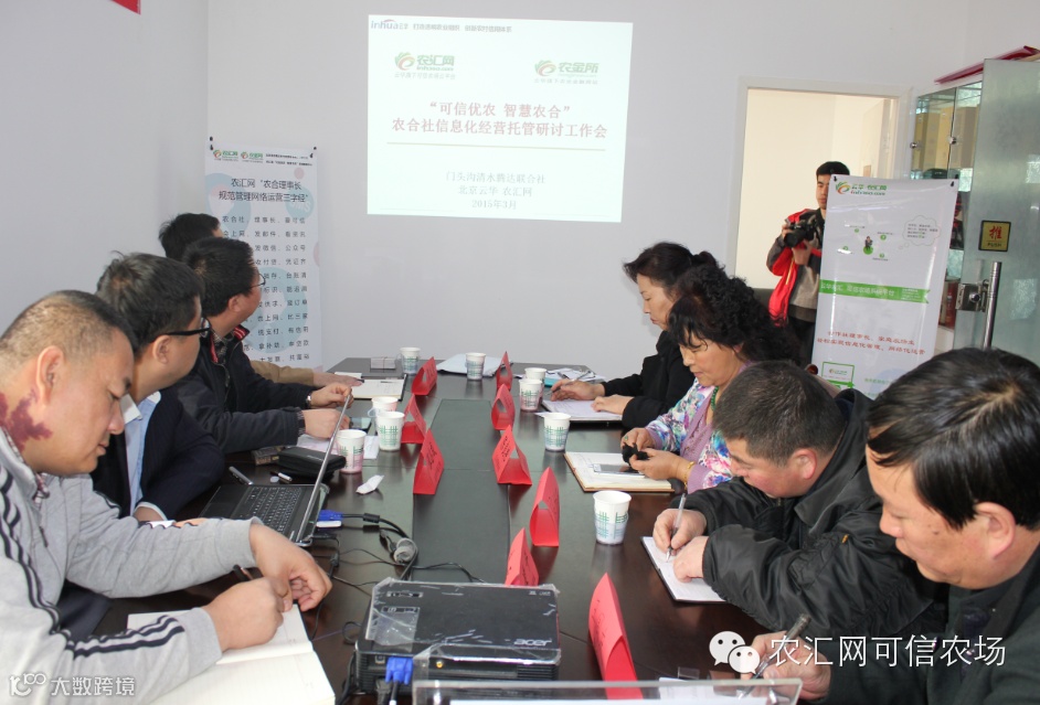 2015年3月18日,在北京门头沟清水腾达联社办公室,北京云华农汇网与清水腾达联合社联合召开“信息化经营托管”研讨会。门头沟清水腾达联合社陈良艳、农汇总裁张志成参与此次研讨会,并且农业部管理干部学院于占海主任及全国农民合作社优秀理事长凌平、贾文海等应邀参会。