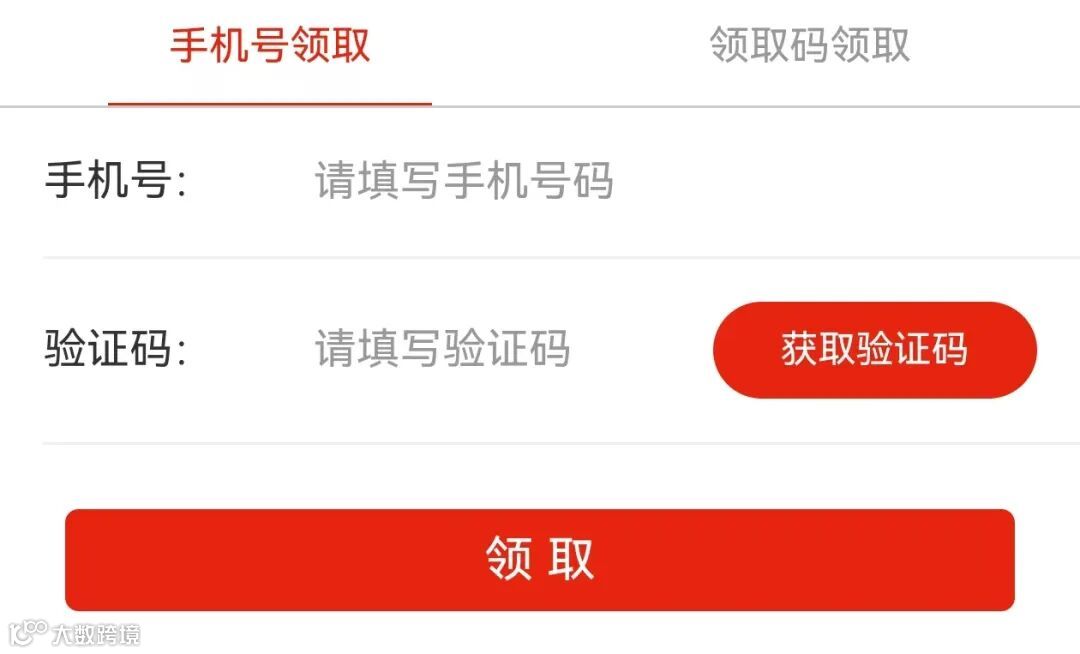 点击“手机号领取”填写手机号,短信接收验证码并输入,点击领取。或者按照领取码领取。