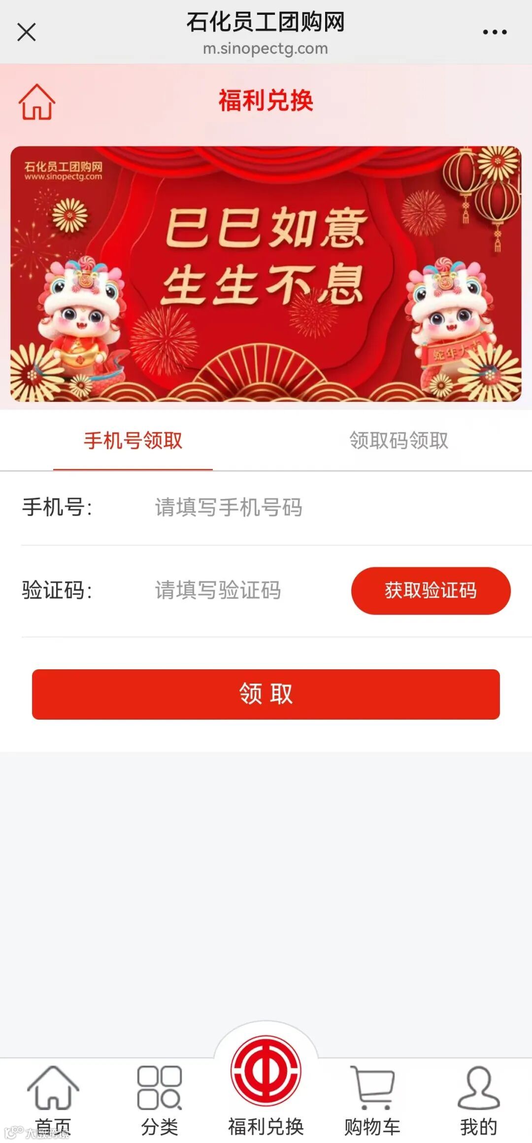 登录石化员工团购网,点击首页下方“福利兑换”按钮,进入员工福利领取页面。
