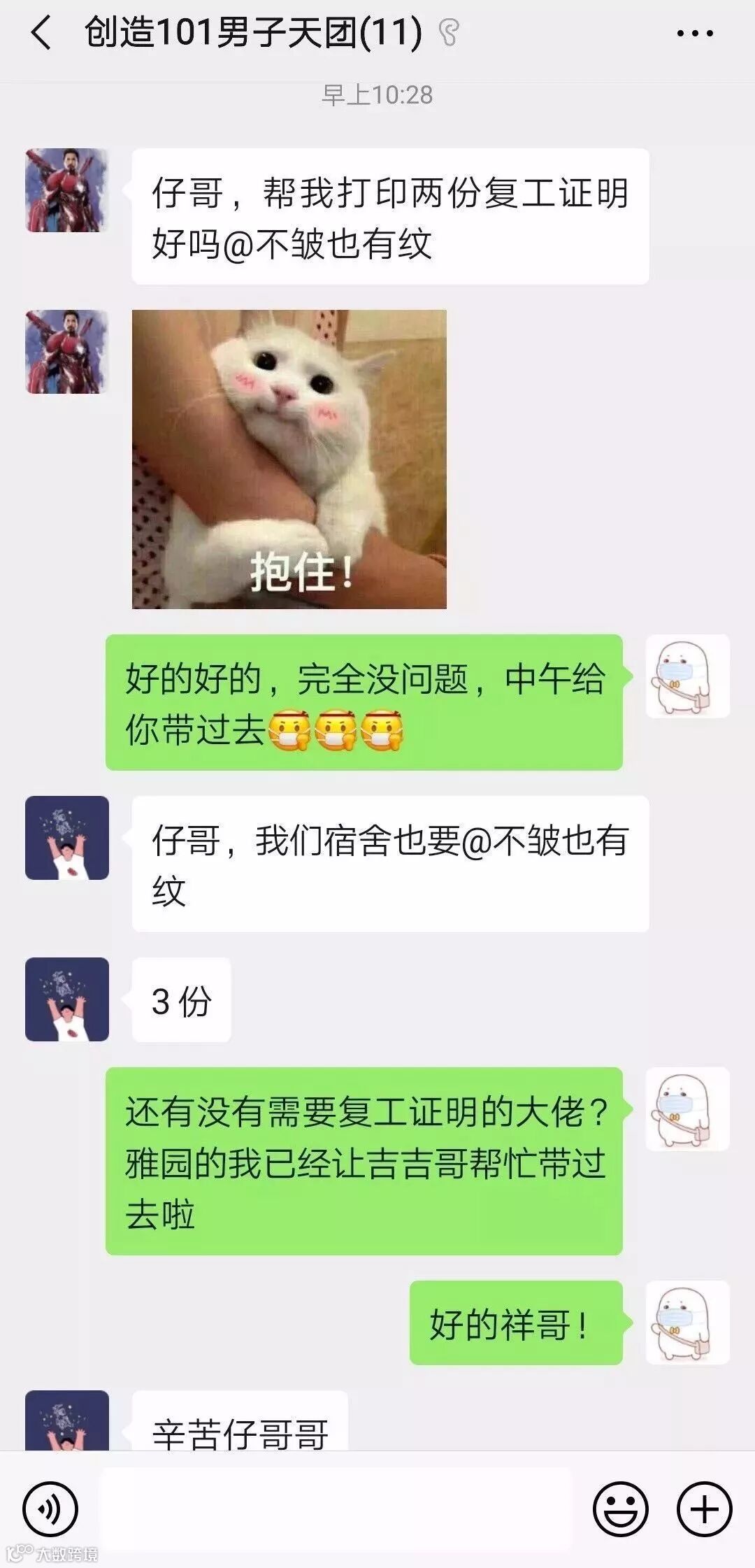 针对在公寓自我隔离员工,公司党、政、工、团积极筹备防疫/生活物资,并第一时间由突击队送到隔离员工宿舍门口,做到隔离不隔爱。
