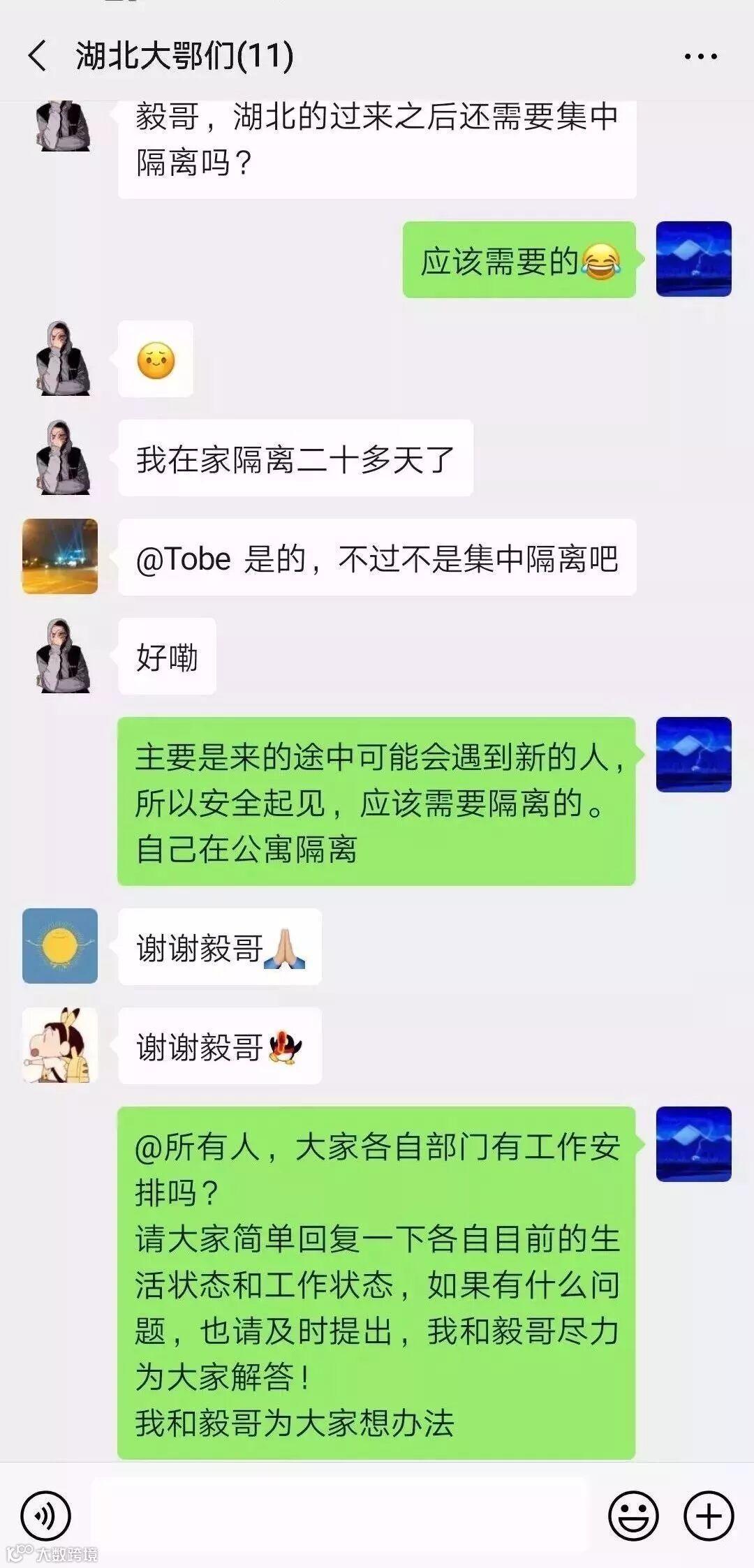 团干亮身份、做表率,争当青年知心人。在疫情发生以来,各团支部迅速行动,建立本支部青年关怀台账,实时掌握支部青年信息,建立湖北疫区/公寓自我隔离青年的关怀慰问机制。分组建立微信交流群,团委委员、支部书记担任负责人,通过视频/信息,与青年在线交流,安抚青年情绪,收集青年困难,线上陪着青年们拉拉家常,传达公司的最新安排等,相互扶持度过这段艰难的日子。