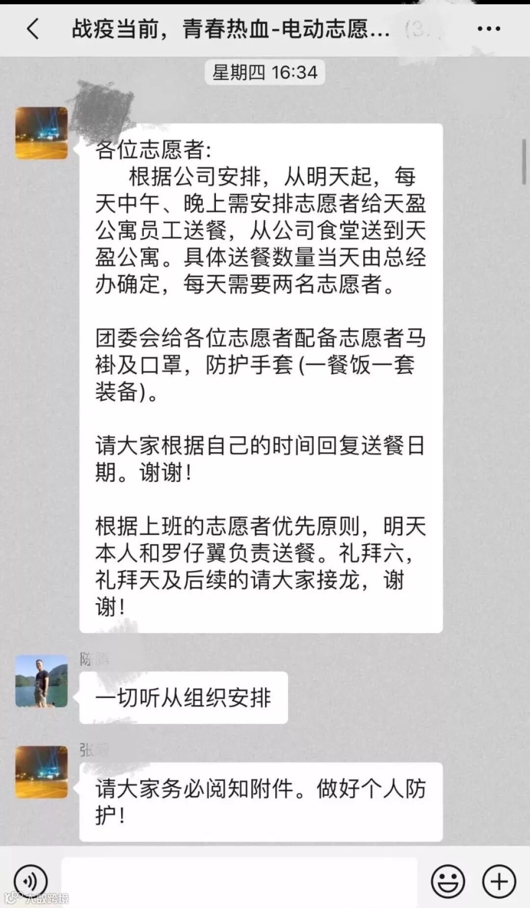 自公司分批次复工以来,大批外地返株人员在单身公寓进行自我隔离,一日三餐是个难题。公司为公寓青年提供中/晚餐,突击队则承担起大批量的送餐任务,把餐饮从公司食堂分批送往天盈、汇隆、动力谷公寓,保证公寓青年的健康饮食。初心在肩、使命必达是他们的真实写照,爱心送餐持续进行中......