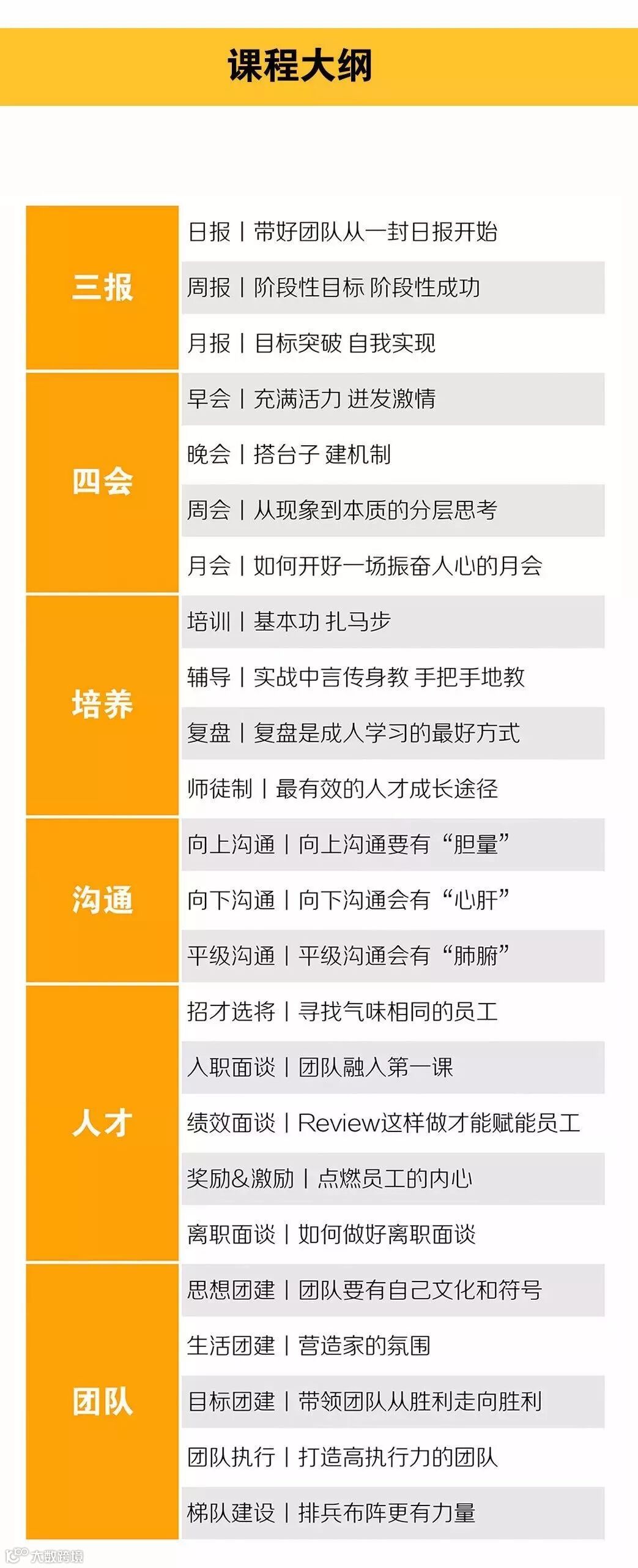 针对主管级、经理级、创业者,正在带团队的同学们,再不需要摸索、拼时间、拼体力。而是每个管理动作都为你指明理论的原型,并将其标准化。