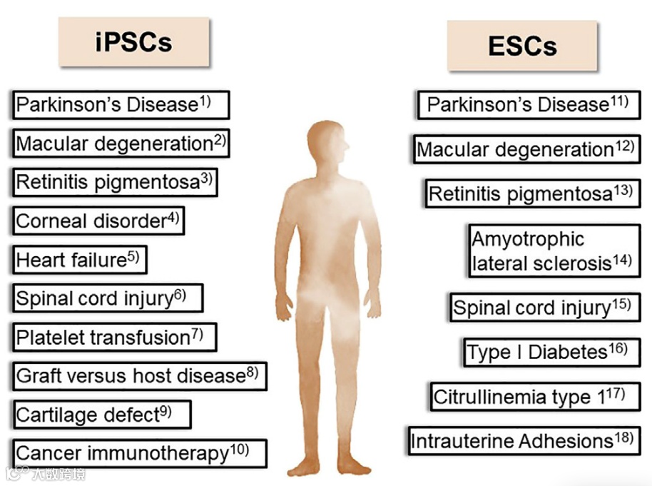 采用iPSCs和ESCs的细胞疗法的临床试验