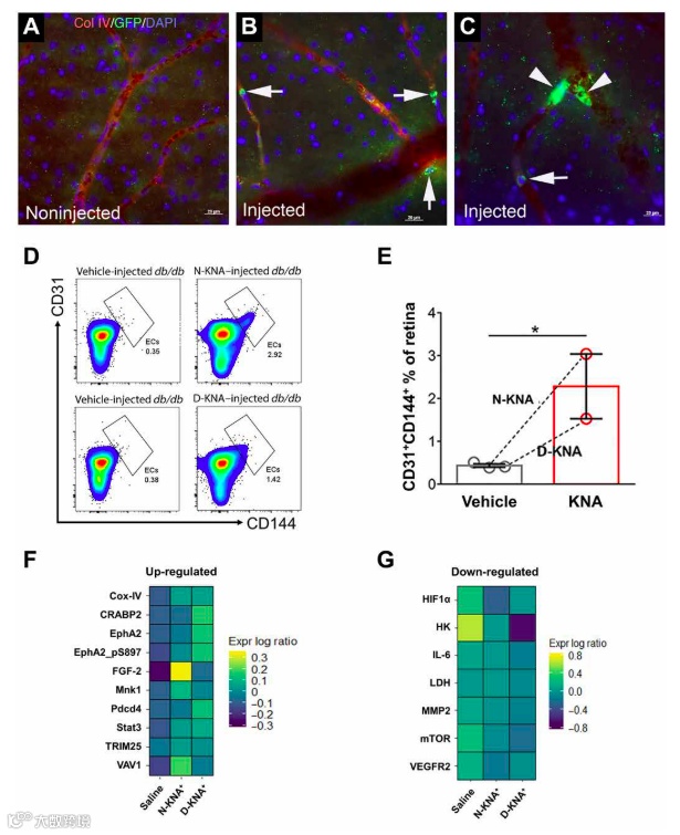 视网膜流式细胞术证实了在 2型糖尿病小鼠中注射非糖尿病或糖尿病 KNA 细胞后的血运重建