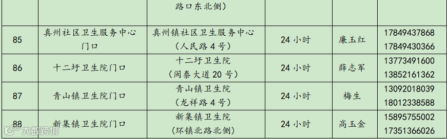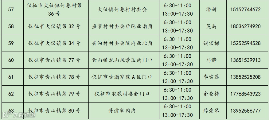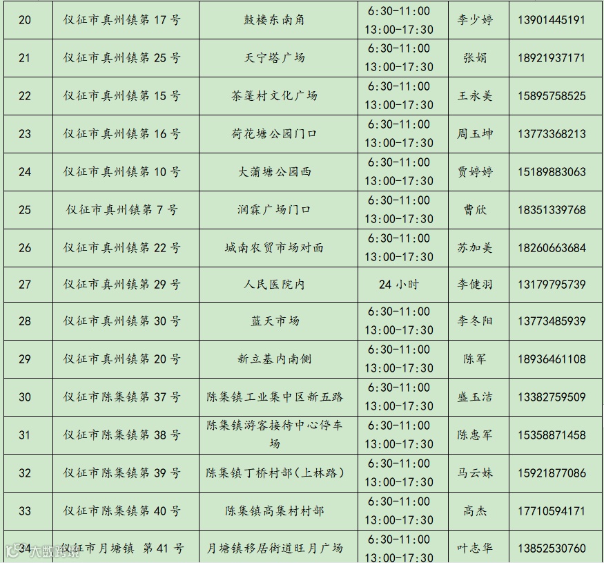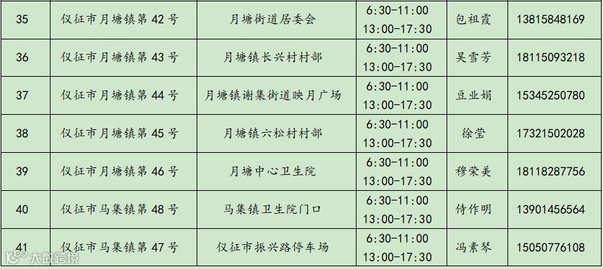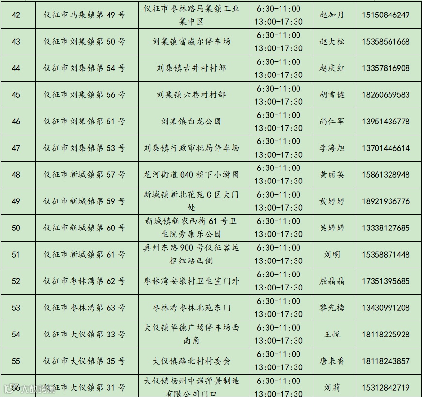 仪征市常态化核酸采样点(采样小屋)信息统计表