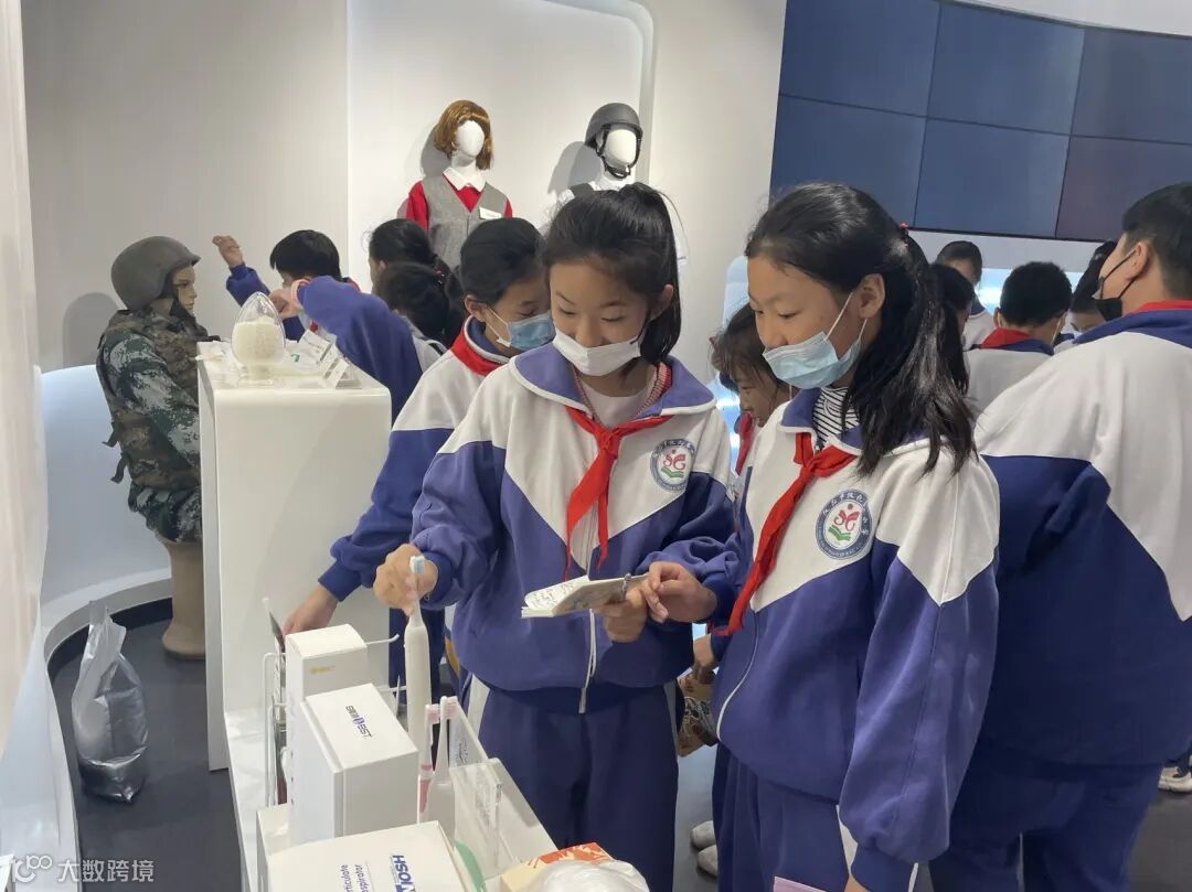 (△图为仪化二小学生在体验公司终端产品)
