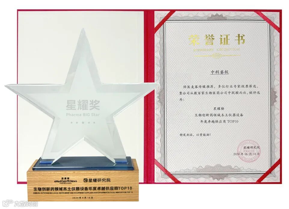 星光熠熠,奋斗与荣耀同行。6月14日2024 IBI EXPO 生物创新药产业大会在南京扬子江国际会议中心盛大开幕,并隆重举行了星耀榜颁奖典礼。中科睿极凭借包括技术创新、增长潜力、运营效能和服务质量等综合实力的突出表现,从数百家生物医药公司中脱颖而出,荣登本土仪器设备年度卓越供应商TOP10。