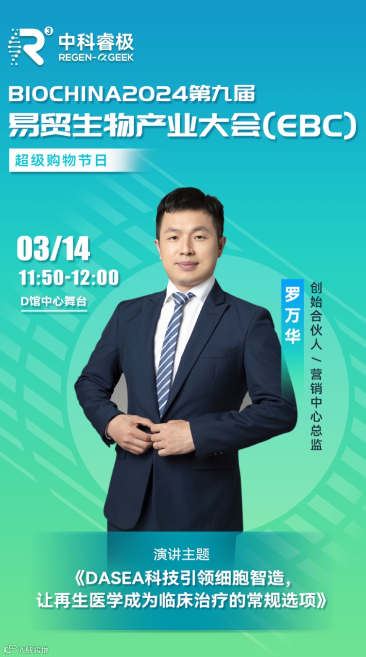 应主办方邀请,在本次展会上的“超级购物节”环节,中科睿极创始合伙人、营销中心总监罗万华先生携DASEA®生物智造平台现场交流,共话细胞与基因治疗(CGT)产业发展未来。