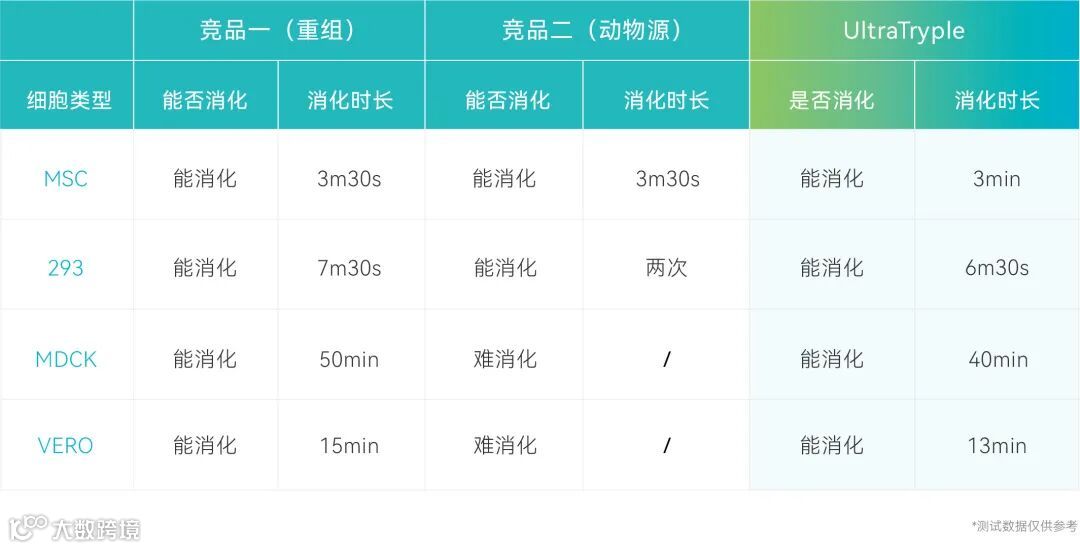 DASEA® UltraTryple可适用于多种细胞,针对强贴壁细胞也能够消化,相比竞品消化时间更短。