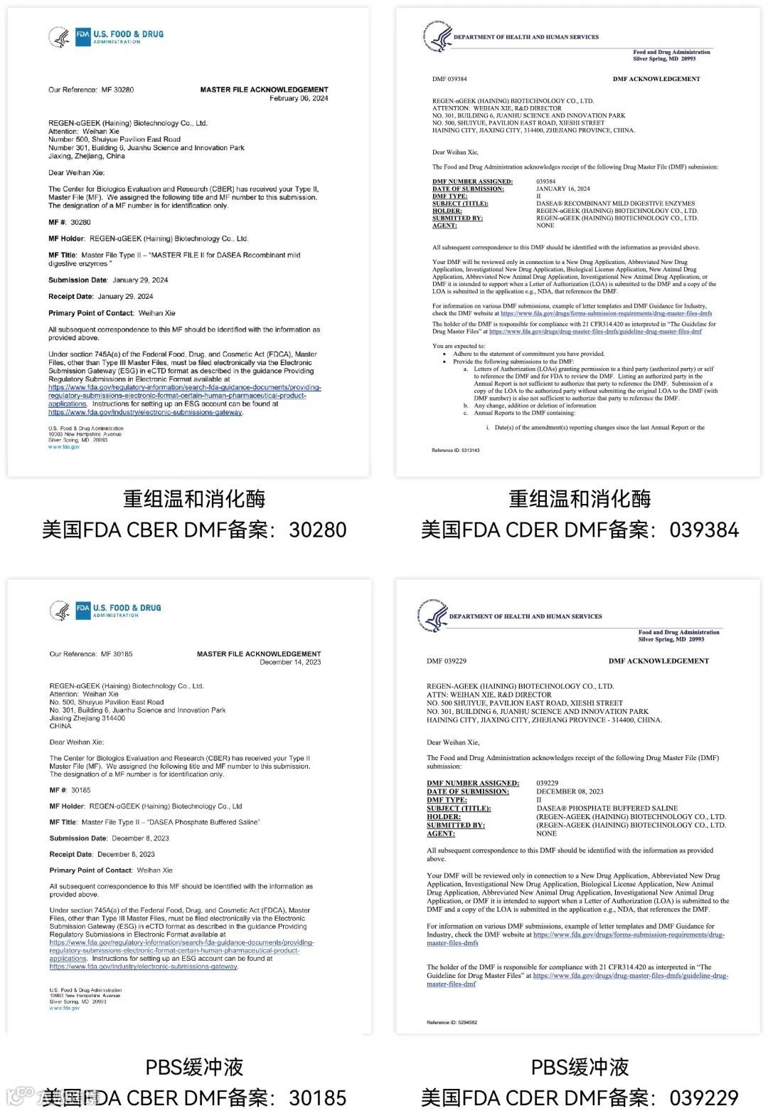DASEA® UltraTryple重组温和消化酶是通过微生物发酵生产,经过多步层析,最终分离纯化得出的重组蛋白产品。生产期间,每道工序都有严格的质量控制标准以保证其符合相关要求,符合GMP级别,已通过ISO 9001、ISO13485、ISO 14001等体系认证。此外,DASEA® UltraTryple重组温和消化酶已取得4项DMF备案,产品生产与品控与国际标准接轨,满足客户各阶段需求,助力药物合规申报。