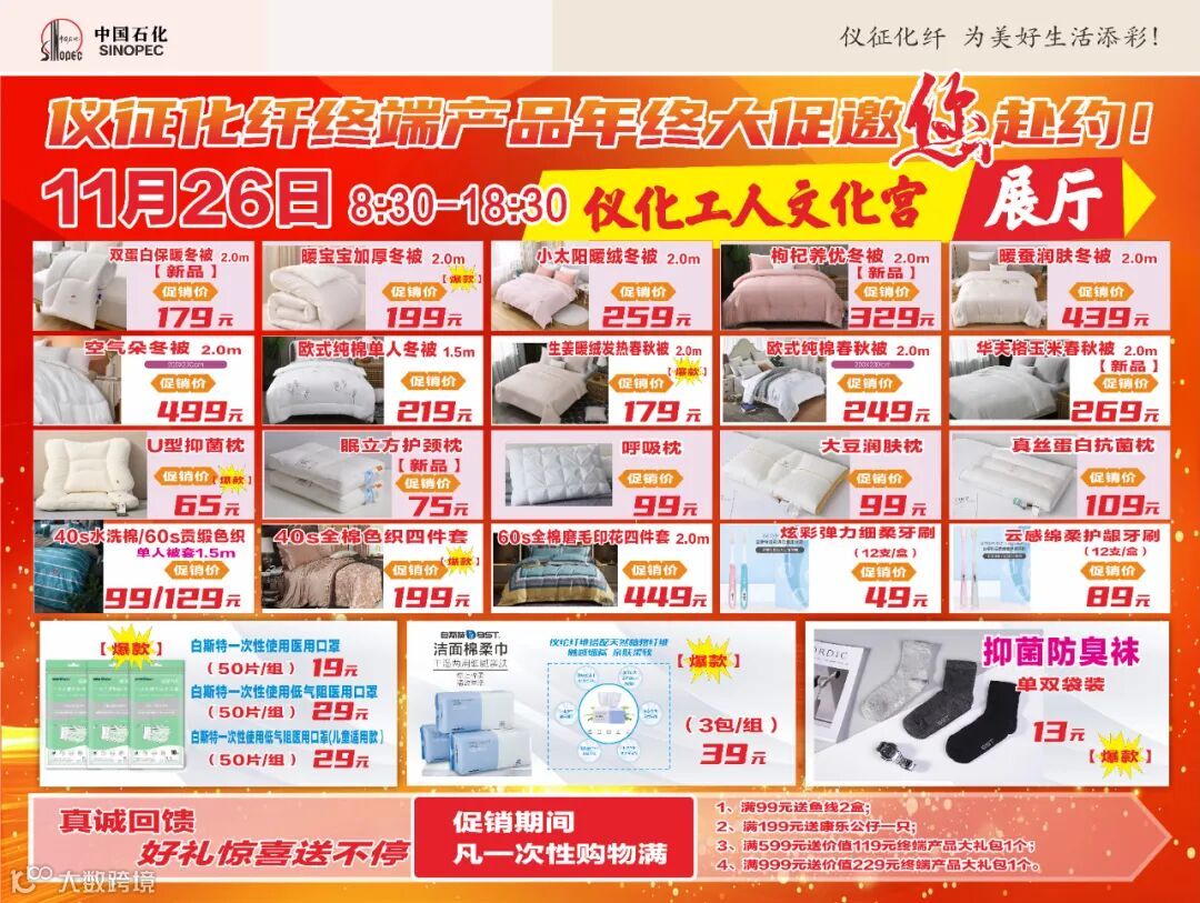 11月26日仪征化纤终端年终促销开始啦!仅此一天!特惠超值~
