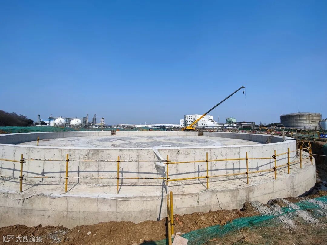 总罐区、循环水站、污水装置均质池基础底板施工。中转库、危废库、中心控制室等配套工程同步实施。