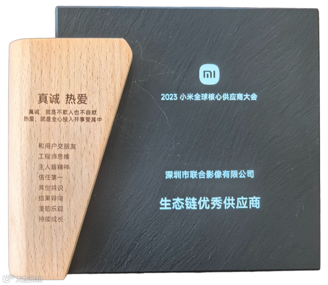 ▲ 联合影像荣获的“生态链优秀供应商“奖杯