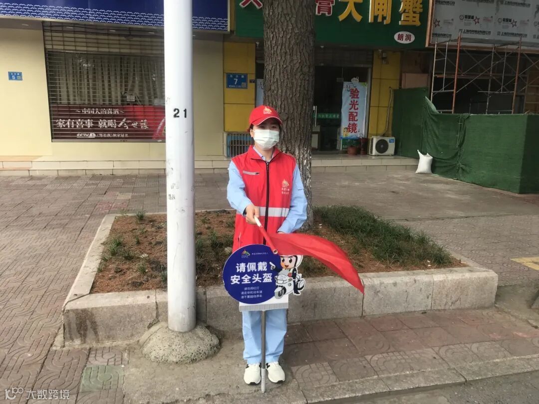 身穿志愿者红马甲