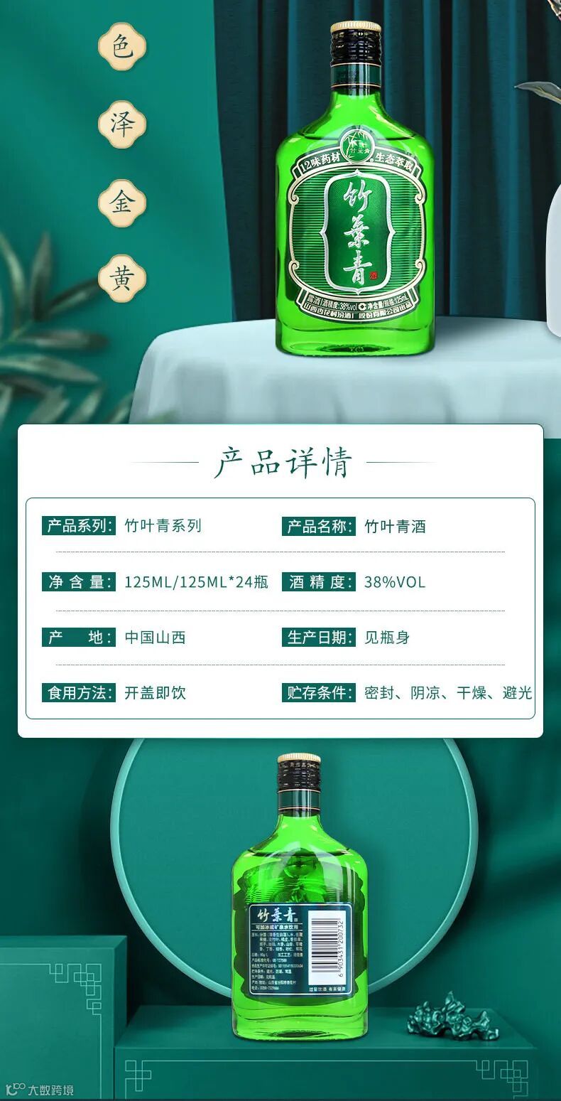 山西杏花村汾酒竹叶青酒是我国有名的保健酒,它的酒文化可追溯到南北朝。它以优质正宗汾酒为基酒,配以十余种名贵药材采用独特生产工艺加工而成,酒香独特,入口甜而微苦,温和无刺激,香味悠长。