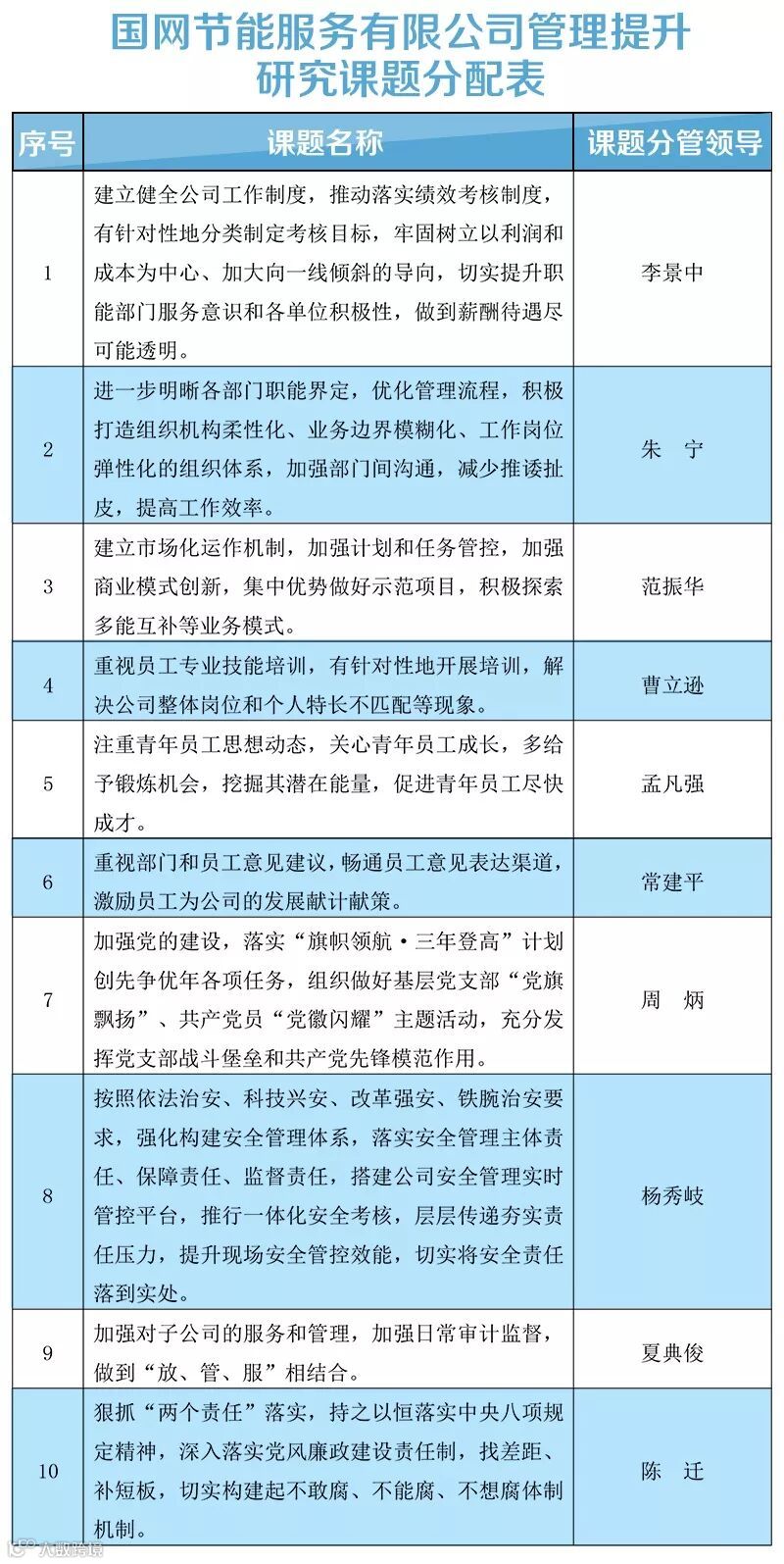 为认真回应员工关切,有效解决公司发展过程中员工关注的难点热点问题,根据公司党委会的有关要求,党建工作部对公司思想动态调研及员工座谈会中所反映的重点意见建议归纳形成了12项管理提升研究课题。目前每位公司领导已分别牵头着手开展其中一项课题的研究工作。为鼓励员工充分发挥聪明才智、积极参与公司经营管理工作,现公开招募课题组研究成员。具体事宜通知如下。