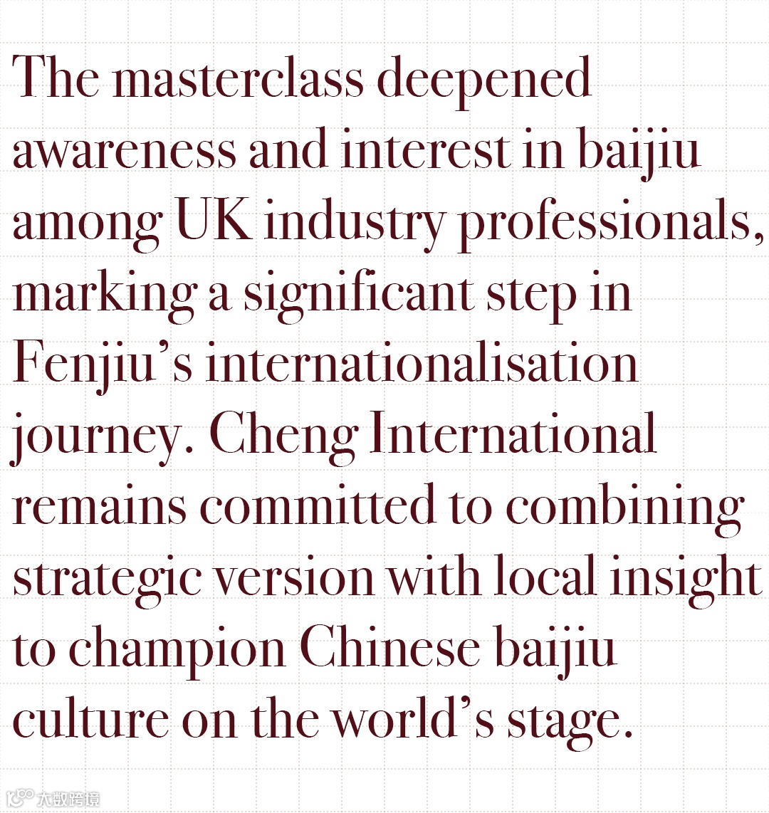 On 15 June 2025, Cheng International, on behalf of Fenjiu International, successfully co-hosted a Baijiu Masterclass in collaboration with the Bar with No Name in Islington.