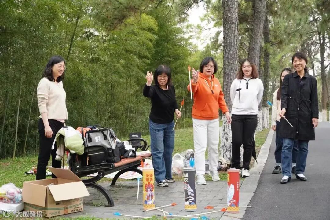 歌曲串烧、花束包装、投壶、扔沙包和踢毽子,大家玩得不亦乐乎,尽享节日的快乐。活动结束时,大家将步道两旁的垃圾清扫干净,将垃圾带走。