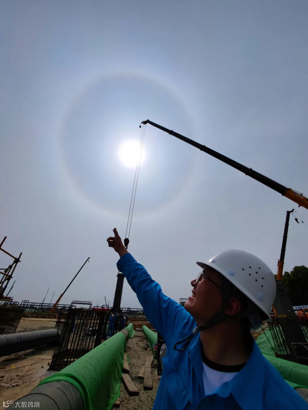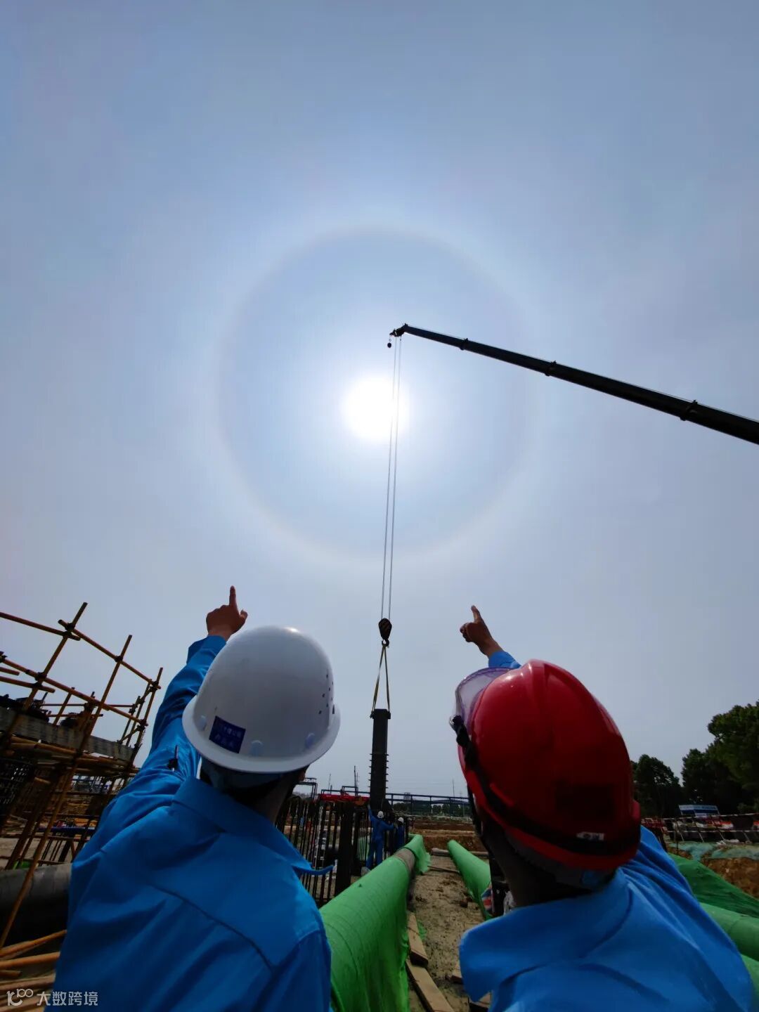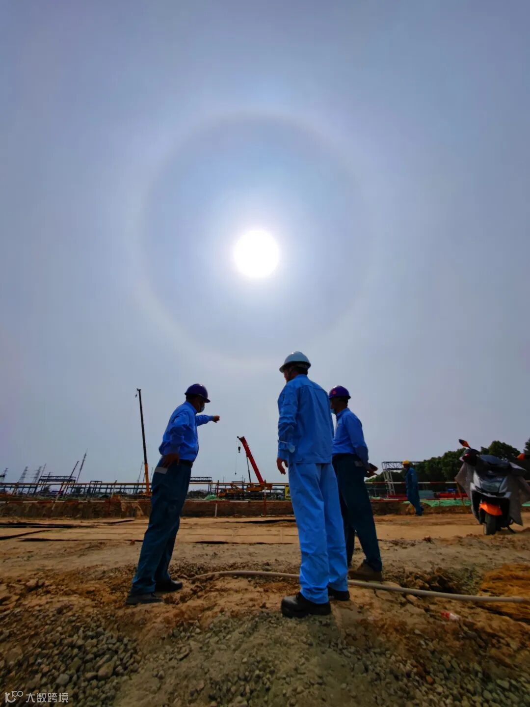 5月18日下午2点至3点间,位于仪征市的中国石化仪征化纤公司年产300万吨PTA项目建设工地上空出现日晕奇观。不少建设者抬头望向天空,发现头顶的太阳,在外围“长”了一个“圈圈”,“圈圈太阳”实乃“日晕”现象。