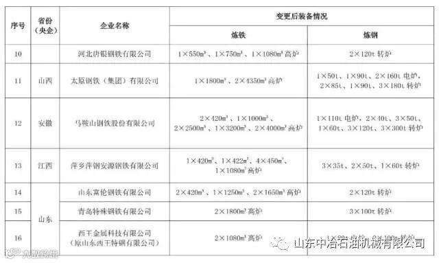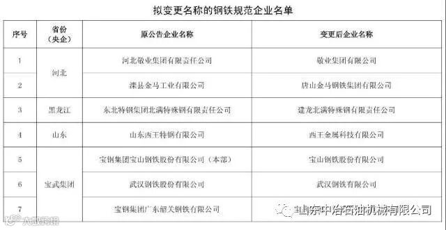 关于钢铁规范企业动态调整情况的公示具体名单如下