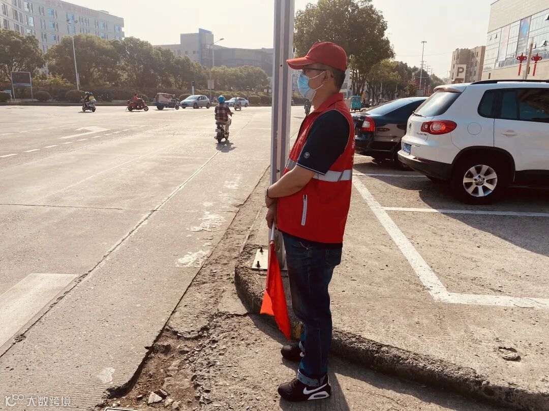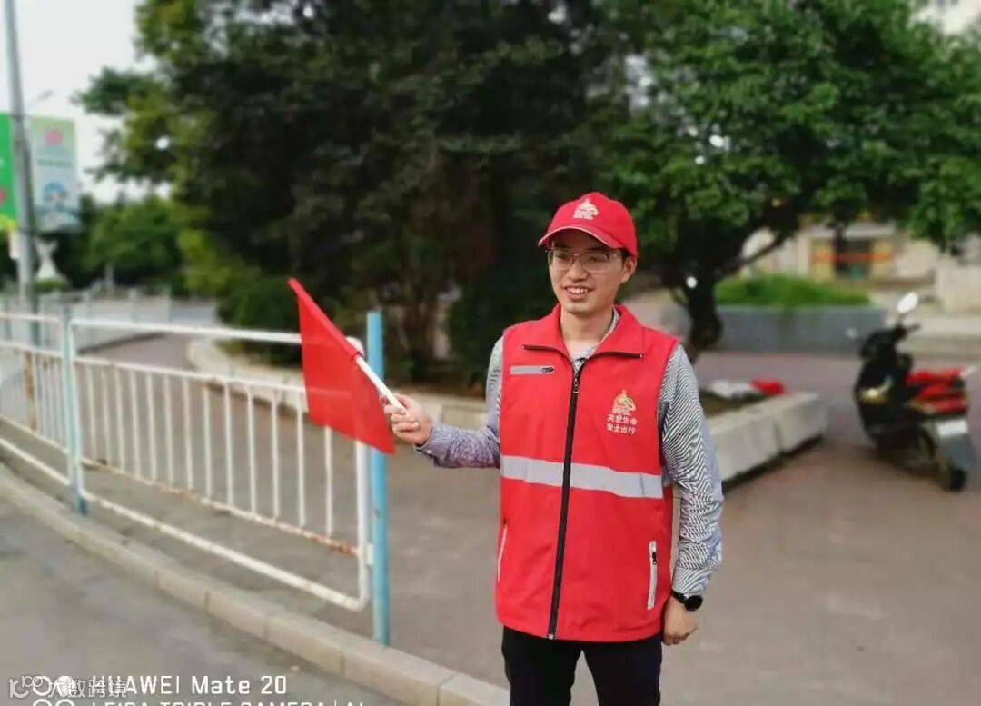 从去年开始,我就看到纤城街头有你——红马甲、红帽子、小红旗各就各位。无论烈日炎炎还是冷风习习,你挺拔的身姿总是在固定时间出现在那里。你的眼神盯着过往车辆,余光扫着想要通行的老弱幼小,总会在他们需要帮助时及时伸出援手。