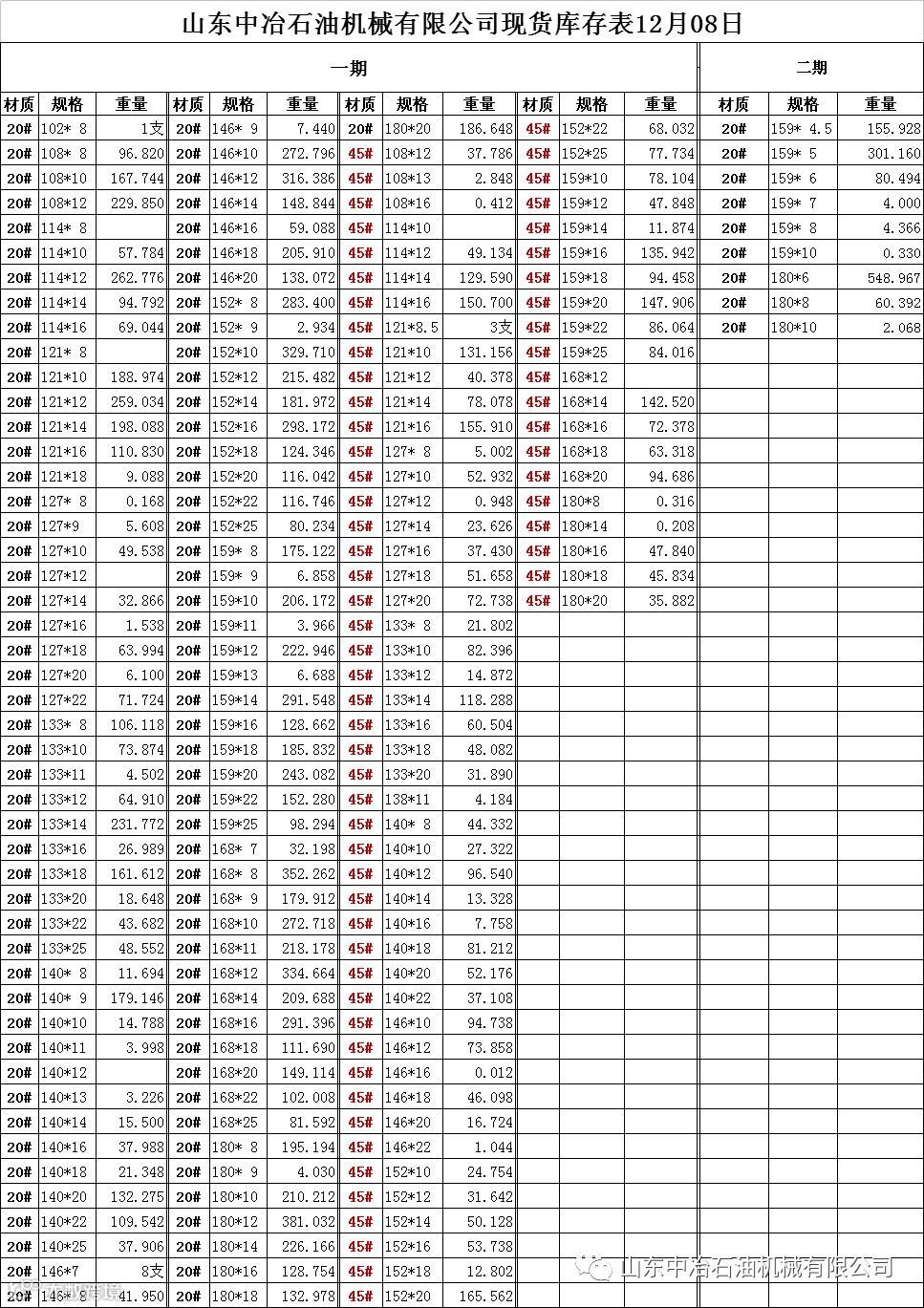 12月08日公司库存 山东中冶石油机械有限公司