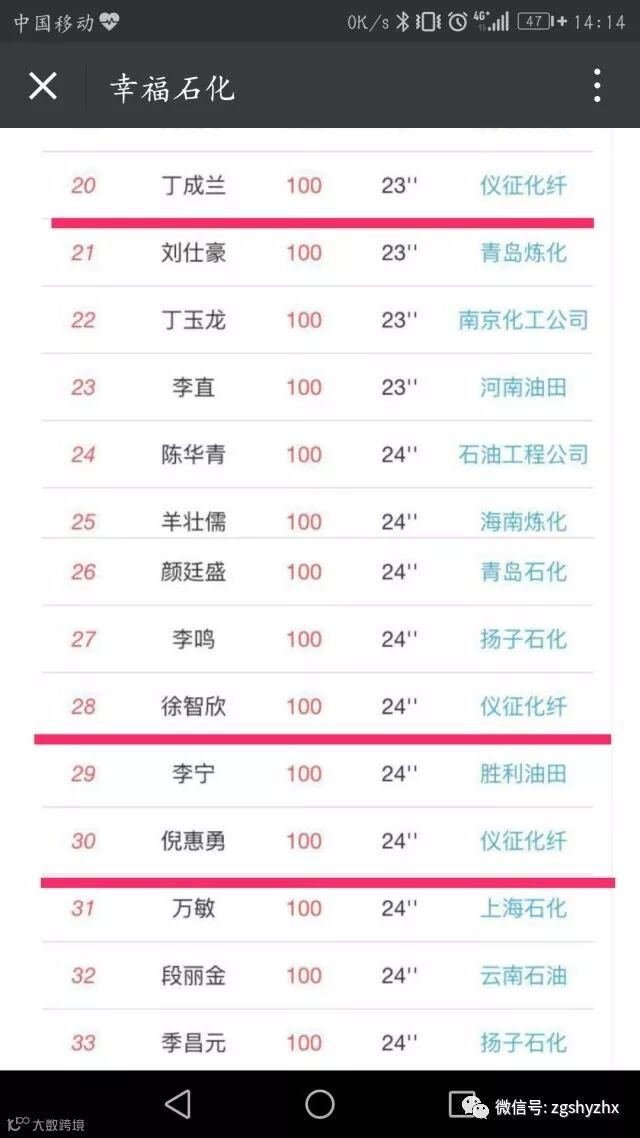 本次答题活动,得到了广大员工朋友们的积极响应,在系统内“重量级”企业中排名第七,答题参与率达到54.69%,其中有6位公司员工进入中国石化排行榜top50,被“幸福石化”点名表扬。小编更是惊奇地发现6人中有2对夫妻喔!真是神一样的夫妻档啊~为你们打call!