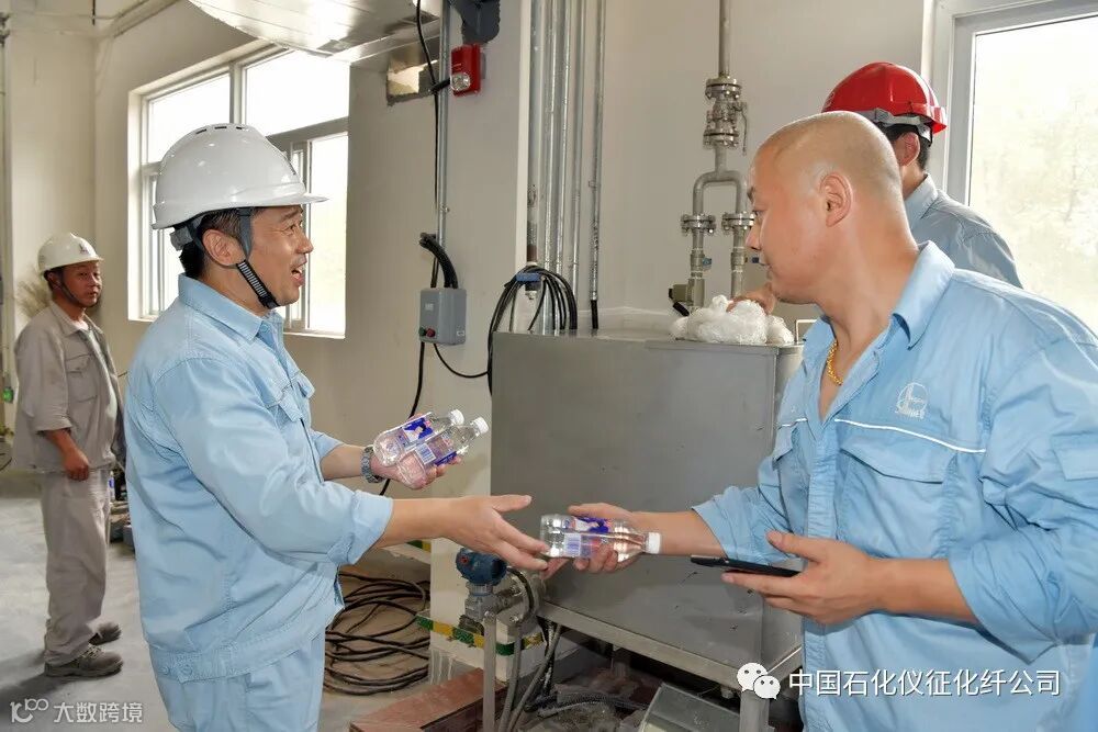 在高纤部二装置,郭晓军、刘建军一行,从前纺走到后纺,向分散在现场作业点正在忙碌的职工表示亲切的慰问,每到一处,公司领导都是快步向前把清凉饮料送到他们手上,希望大家在高温天气下,注意安全,注意休息,确保装置稳定生产。