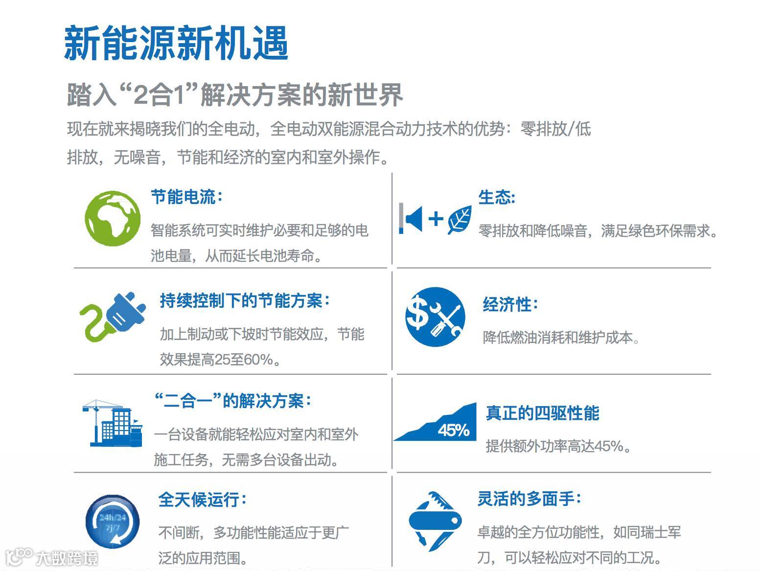 设想一下如果您拥有一批新能源动力的多功能设备,不但可以环保节能并能随时应对不同的工况任务,没有电力的工况下也能轻松胜任,管理起来更为方便轻省。