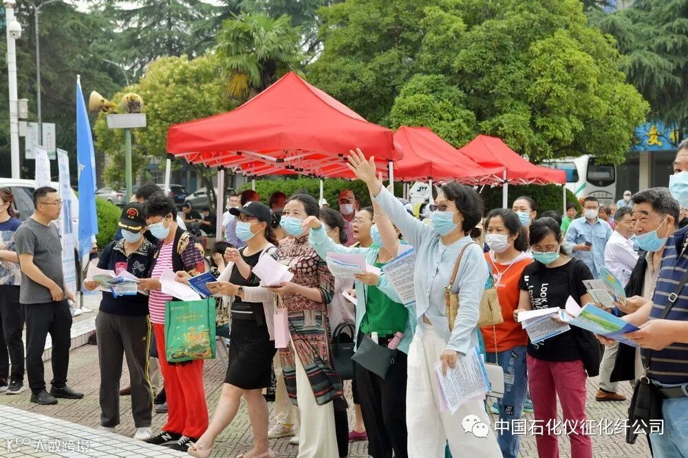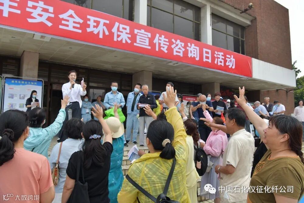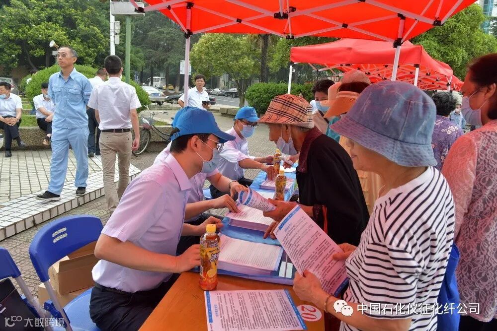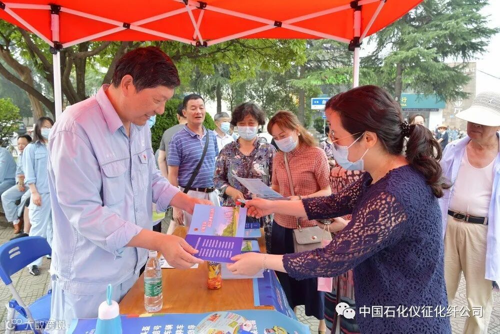 6月20日上午,由中国石化仪征化纤公司安全环保部、离退休管理中心牵头承办,消防中心、热电部、储运部和南京鼓楼医院集团仪征医院、扬州建盛公司、农业银行仪征支行等驻区单位参与协办的“安全生产月”活动“重头戏”——“仪征化纤公司安全环保宣传咨询日”活动在生活区影剧院广场举行。公司副总经理刘建军、安全总监李仁海和安全环保部、离退休管理中心、消防中心、扬州建盛公司等单位的负责同志,与社区居民群众一起参加了安全宣传咨询活动。