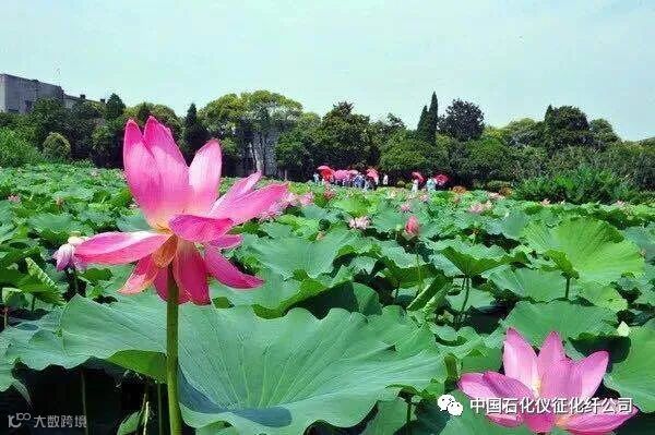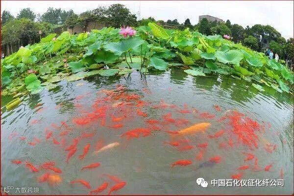 水务部生态塘,喂鱼、赏花,体验中国石化仪征化纤公司作为高度负责任的国有大型企业,所做的绿色环保工作。
