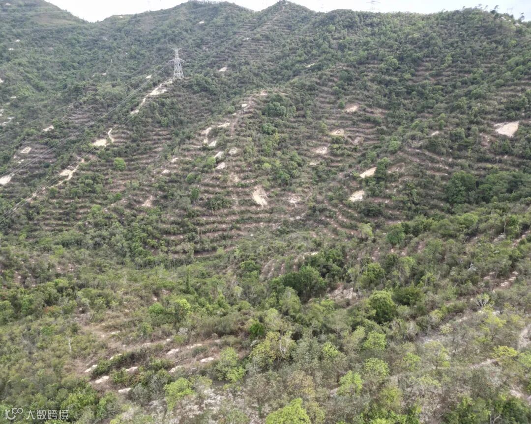 一棵棵新栽的树苗整齐有序挺立在山坡上