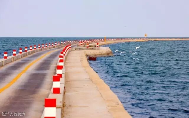 把人工岛与陆地连接起来的是一条长8.48公里的进海路。为了把对海洋流场影响降到较小,在修建过程中创新多项技术,施工速度快、投资少、维护成本低,获得国家实用新型专利,6项省部级成果。