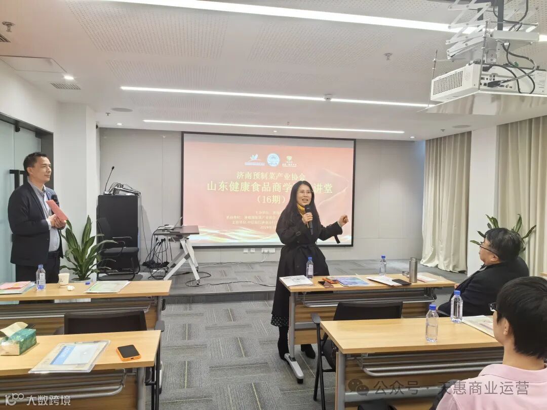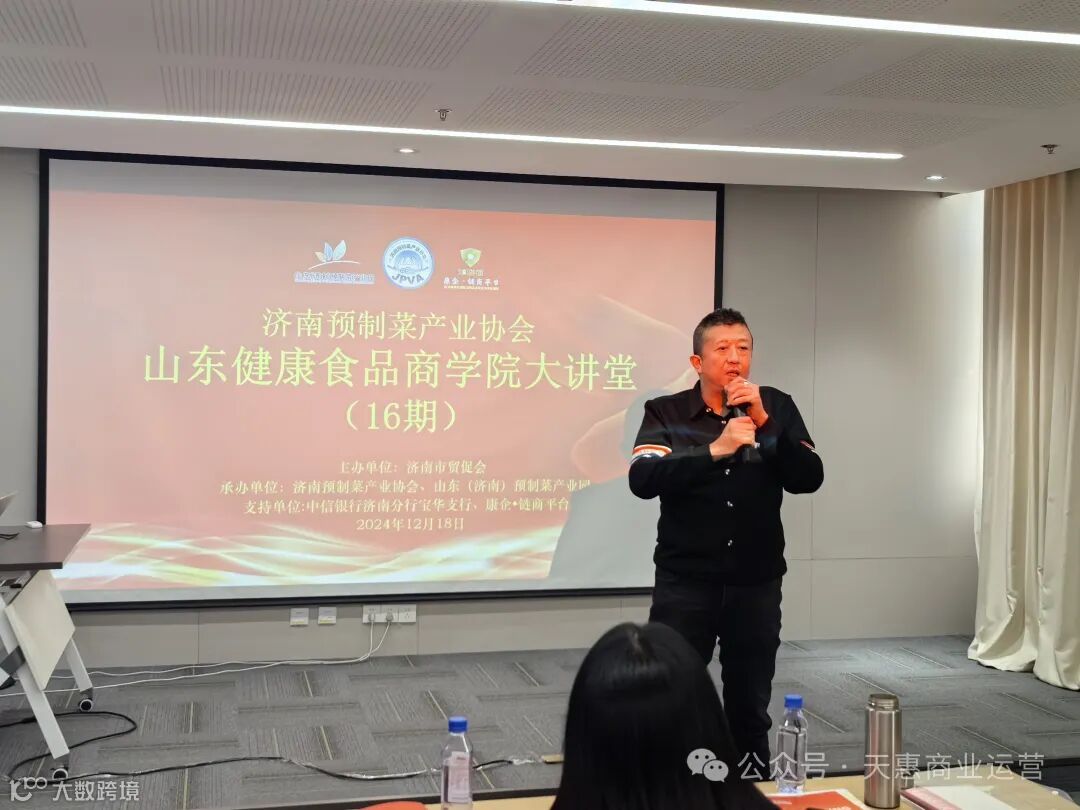 2024年12月18日,由济南市贸促会主办、济南预制菜产业协会和山东(济南)预制菜产业园承办的第十六期山东健康食品商学院大讲堂在山东(济南)预制菜产业园成功举办。本次活动聚焦于如何通过展会平台提升食品企业的获客能力及跨境贸易的竞争力并探讨如何在这个数字化浪潮中成功转型与发展。山东省农科院专家;济南市贸促会、山东预制菜产业联合会、济南预制菜产业协会代表;国际国内采购商及经销商代表;园区“七位一体服务中心”入驻服务机构、金融服务机构代表;农业、餐饮、食材、预制菜产业上下游企业以及相关服务企业、入园企业、园区运营团队约50人参加。