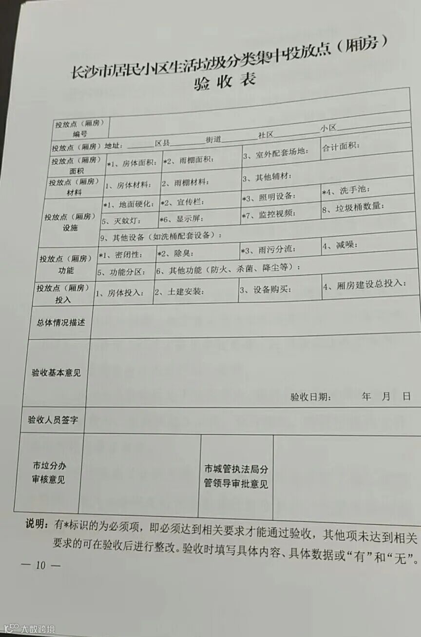 (长沙市居民小区生活垃圾分类集中投放点(厢房)验收表)