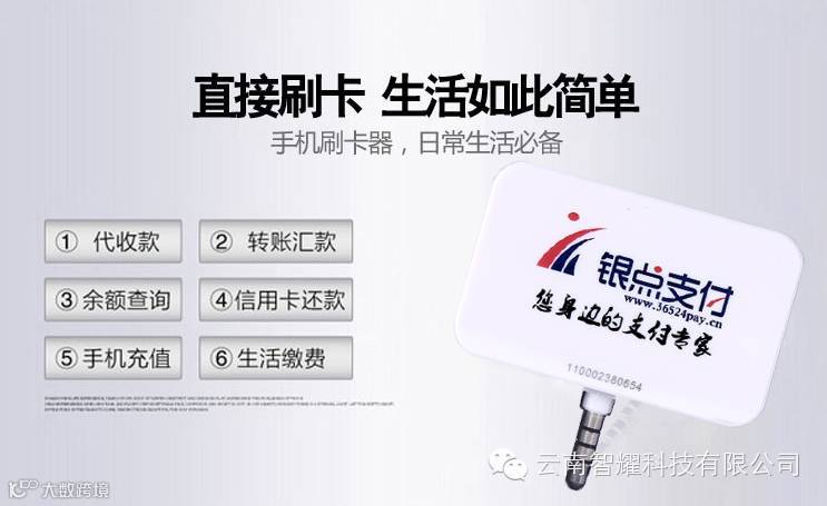办理中国银联云南银点支付移动POS机、手机刷卡器,可刷信用卡可封顶30分钟搞定!