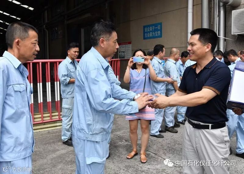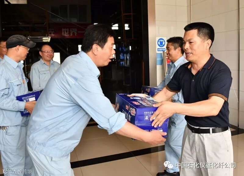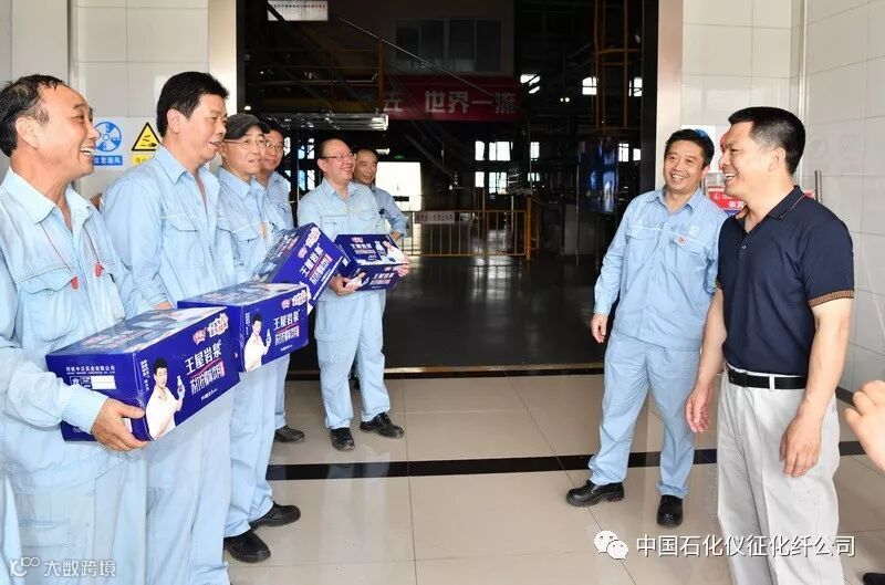 上午十点,韩士军、陈达一行首先来到高纤部二装置慰问高温生产一线职工,为他们送去清凉饮料,接着来到储运部成品一区东区为现场职工送上清凉,最后到短纤部大容量装置慰问。