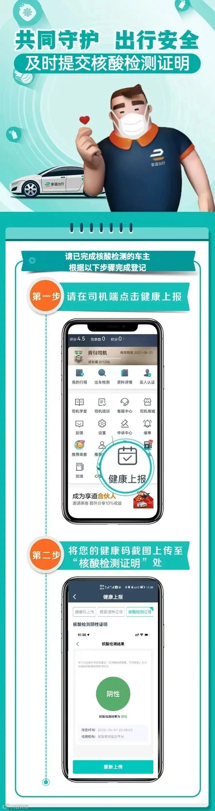 ● 驾驶员48小时核酸检测并上传报告,避免影响出车。