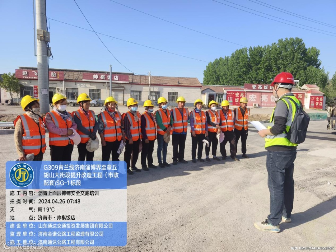 本次沥青摊铺全长5.4公里,平均宽度7.5米,面积40500㎡,包含大小平交路口31个,自2024年开工以来,项目部全体员工共同参与,各部门齐心协力,为沥青上面层的摊铺做好准备工作。