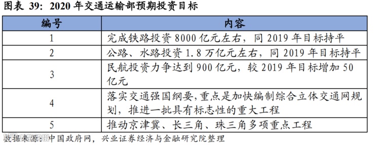 投资、消费、出口是拉动经济的三驾马车。2019 年,消费/投资/出口对 GDP 增长的贡献率分别为 57.80%/31.20%/11.00%。然而,在当前影响下,消费与出口拉动经济增长的能力受限。消费的重要子行业如汽车、餐饮和旅游皆受重创。而受疫情波及,全球经济增速趋缓,进而导致我国出口承压。2003 年爆发“非典”,投资的 GDP 增长贡 献率高达 70%,可以预见,投资将成为当下稳增长的主要驱动力。