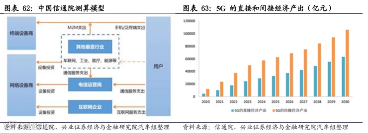 5G 将成为社会发展关键动力与抓手。根据中国信通院发布的《5G 社会影响力》测算,2030 年,5G 将带动的总产出、经济增加值、就业机会分别为6.3亿元、2.9亿元和800万个。