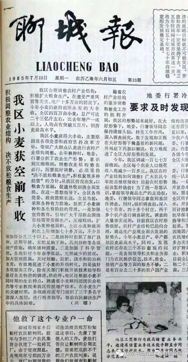 1985年聊城日报头条,全区小麦大丰收,人均达到500斤。