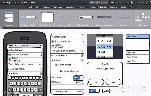 适用于快速草图原型设计。如果产品经理的主要工作内容是制作产品概念图,表达产品设计概念、理念和基本布局,这种情况下不妨选择 Balsamiq Mockups。用Mockups制作出来的作品都是手绘风格的,比较适合用来画线框图及原型,但不适合做带有交互性质的原型设计。Mockups的另一 个特色功能在于它提供的多数组件都可以定制外观,对中文的支持也不错。