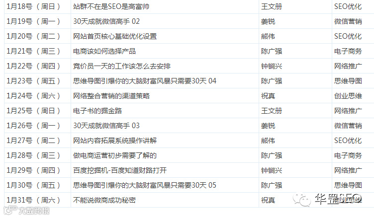 导读:华罡网校2015年1.02-31日课程表