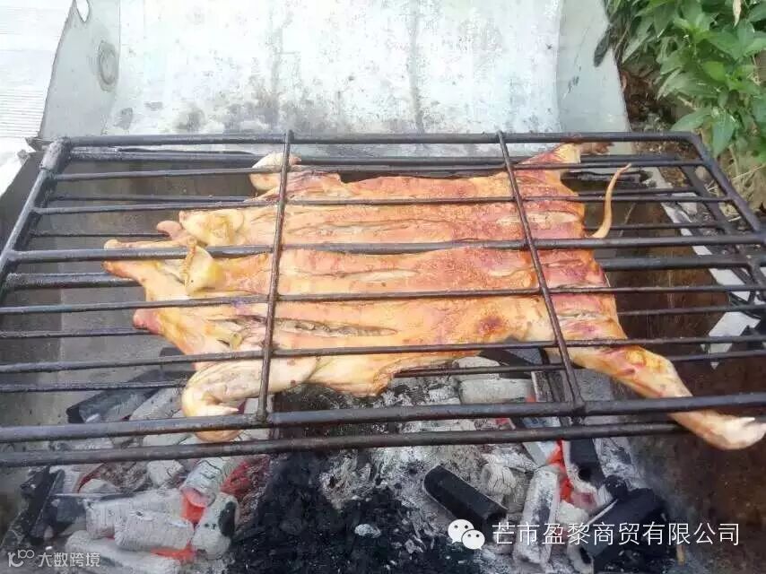 以上好鲜嫩的小香猪为原料,用配好的材料腌制半小时,然后放炭火上烤,边烤边用小刀划开,烤熟后颜色金黄鲜红,香味扑鼻,走俏餐桌,已开始跃出深山,走俏南北,且成为盈黎民族风情园的抢手美食。
